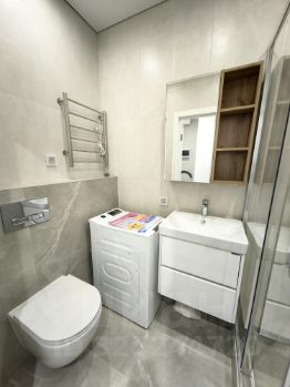 Совмещенный санузел оборудован импортной сантехникой (душевая кабина).