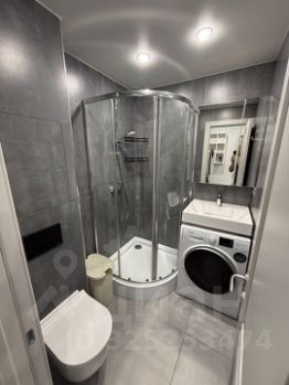 Санузел совмещённый, оснащён душевой кабиной и стиральной машиной.