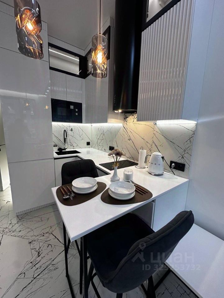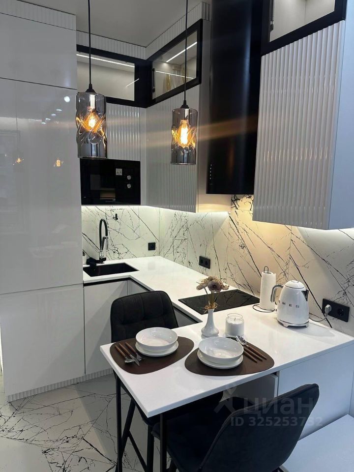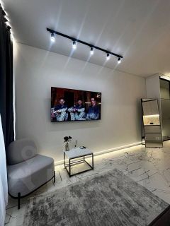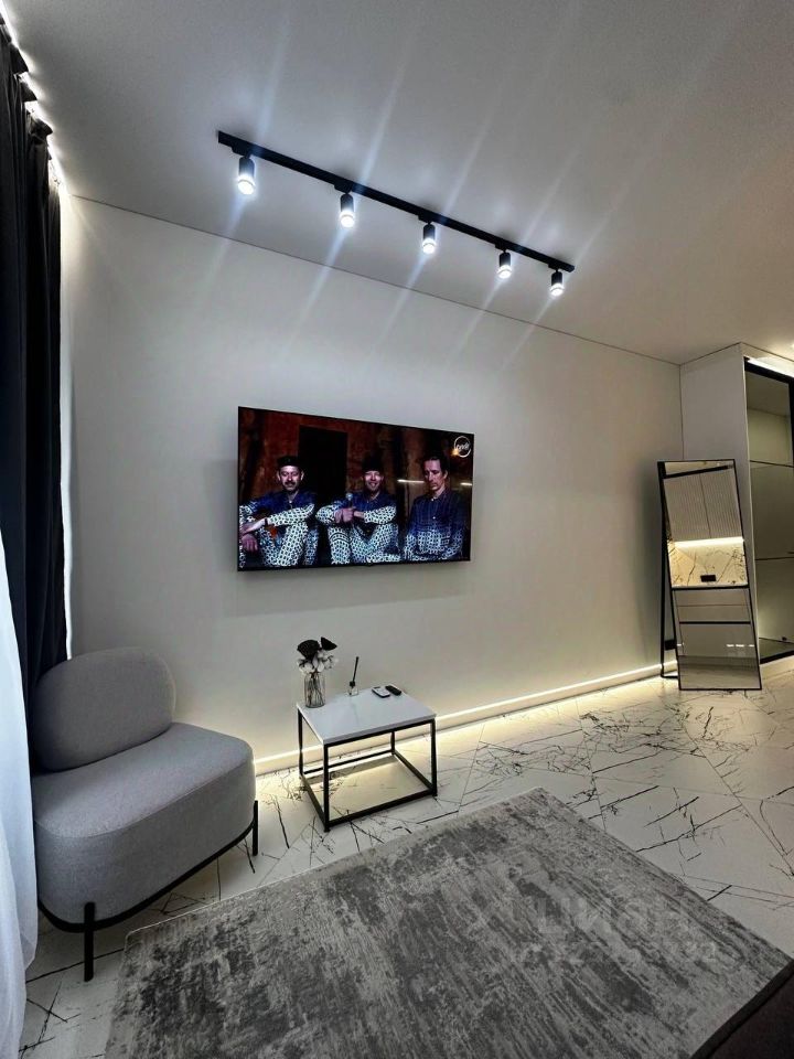 Внутри квартиры выполнен дизайнерский ремонт. В комнате есть необходимая мебель для комфортного проживания. Кухня площадью 10 кв. м оснащена всей необходимой техникой: кондиционер, холодильник, посудомоечная машина, телевизор и стиральная машина. Совмещённый санузел оборудован душевой кабиной. Окна выходят как на улицу, так и во двор, поэтому можно наслаждаться разнообразными видами.