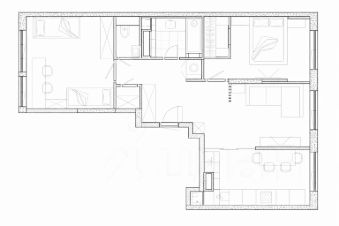 - две изолированные спальни: основная спальня с кроватью 160х200 и отдельной гардеробной, детская спальня с двумя односпальными кроватями 90х200;