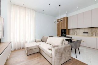 В квартире сделан дизайнерский ремонт, который придаёт ей уникальный стиль и уют. Здесь есть все необходимое для комфортного проживания: кондиционер, холодильник, посудомоечная машина, телевизор и стиральная машина. В комнатах и на кухне установлена качественная мебель, а в ванной комнате вас ждет уютная ванна, где можно расслабиться после долгого дня. Окна выходят как на улицу с видом на Сити , так и во двор, что обеспечивает хорошую освещенность и тишину.