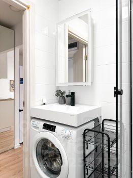 Бытовая техника: холодильник, варочная панель, электрический чайник, стиральная машина, духовой шкаф, посудомоечная машина, кондиционер, микроволновка, электрический полотенцесушитель для сушки полотенец и мелких вещей.