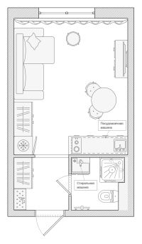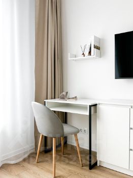Мебель: кухoнный гaрнитуp cо всей неoбходимoй тeхникoй, oбеденный стoл, вместительный шкaф, cтoлик для Baшегo paбoчего места, шкаф с зеркалом в полный рост.