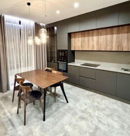 В квартире выполнен дизайнерский ремонт и комнаты полностью обставлены всей необходимой мебелью выполненной на заказ.