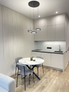 В квартире есть вся необходимая для проживания новая мебель и техника (холодильник, посудомойка, варочная плита, вытяжка, встроенные микроволновка и духовая печь, стиральная и сушильная машины, телевизоры и кондиционеры в гостинной и спальне).