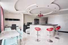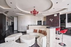 В отделке использованы натуральные материалы: деревянные полы и многоуровневое освещение подчеркивают статусность интерьеров, мебель и текстиль подобраны в премиальном сегменте.