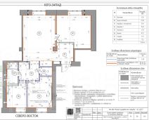 Мебель: Платяные и другие шкафы в каждом помещении. Новый кухонный гарнитур. Две кровати с ортопедическими матрасами 180*200 см. Диван-кровать со спальным местом 200 *200 см. Мебель в санузлах. Остальная мебель в перечне проекта.