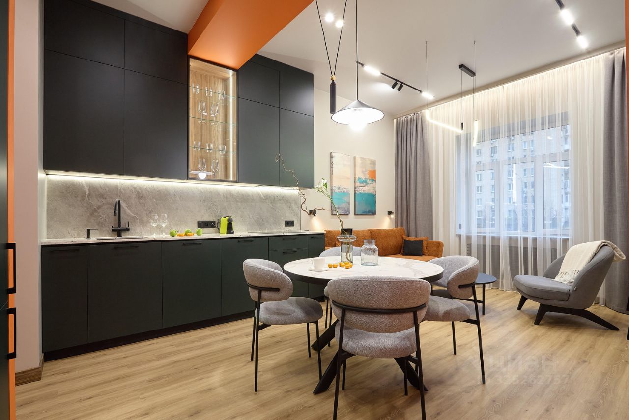 Из техники: Холодильник. Духовка. Микроволновка. Индукционная варочная панель на 4 конфорки. Вытяжка над панелью и бесшумные вытяжки из кухни и санузлов. Посудомойка. Фильтр для чистой питьевой воды. Чайник. Кофемашина. Пылесос. Стирально-сушильная машинка. Накопительный нагревательный бак для проточной воды ( на аварийный случай). Тёплый пол в санузлах. Шторы с подсветкой. Телевизор. Домофон. Роутер с интернетом.