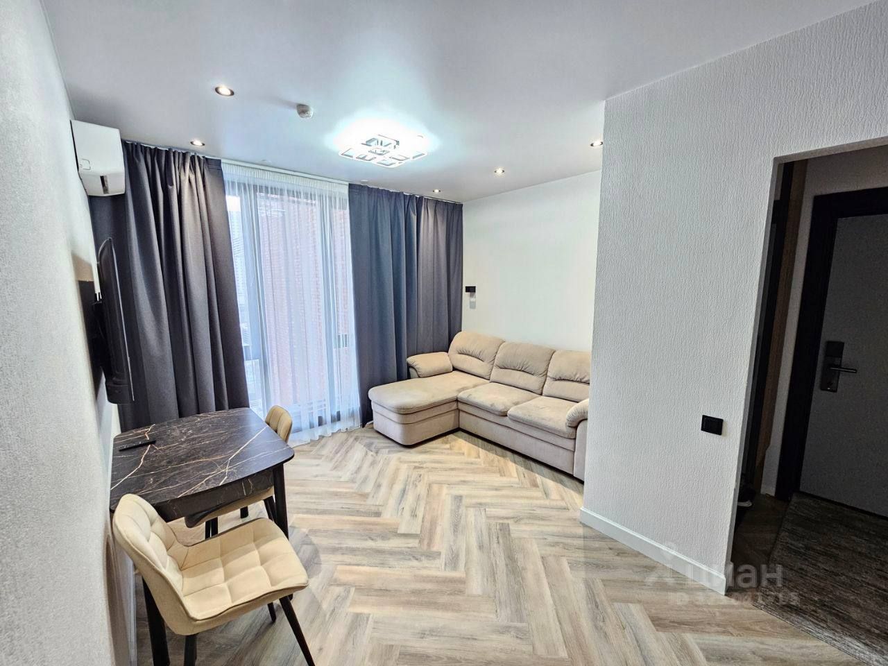 Квартира укомплектована кондиционером, вытяжкой, плитой, стиральной машиной, чайником, телевизором, холодильником, феном, утюгом и микроволновкой.