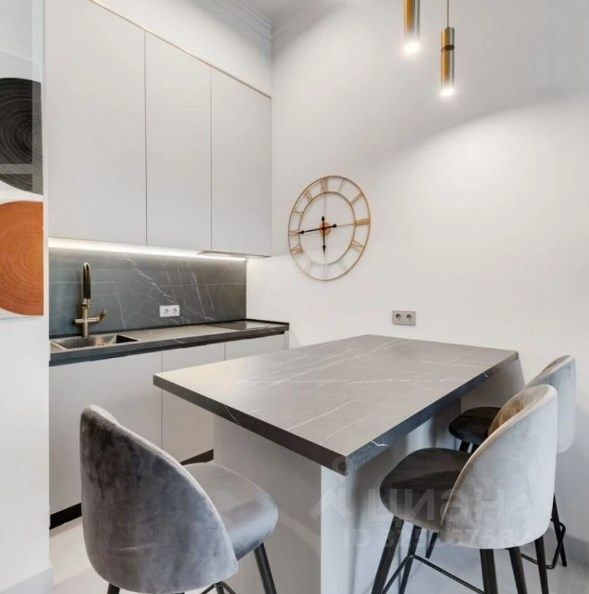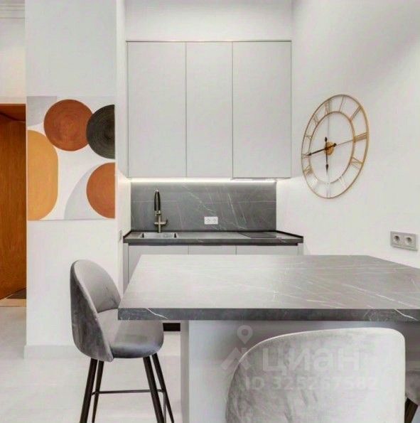 Выполнен дорогостоящий евроремонт, с использованием высококачественных экологичных материалов. Дизайнерская отделка, атмосфера в квартире располагает к уюту и комфорту. Кухонная зона оборудована всей необходимой встраиваемой техникой, включая посудомоечную машину. Имеется кондиционер