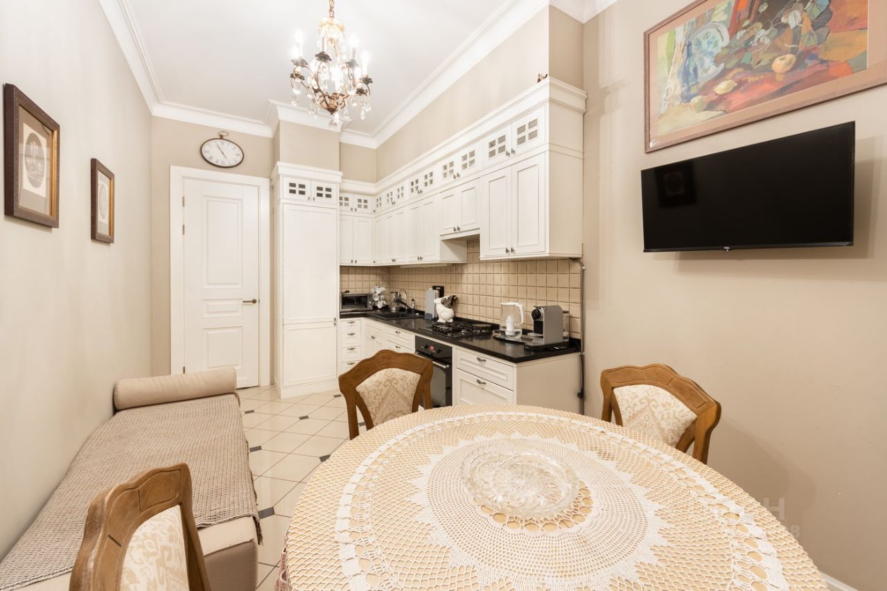 Функциональной планировкой предусмотрено: изолированная кухня, гостиная, 2 спальни, постирочная, раздельный санузел. Продуманное и рациональное использование каждого квадратного метра квартиры - вместительные встроенные шкафы и cистемы хранения. Квартира полностью меблирована и оснащена всей необходимой бытовой техникой. Ремонт выполнен с использованием качественных отделочных материалов в современном классическом стиле. Светлые тона и высокие потолки, создают ощущение простора, уюта и умиротворения. Дом имеет огороженную территорию, въездные ворота и парковку для жителей дома. Во внутреннем дворе дома расположена детская площадка, очень зелено и безопасно. Чистый, ухоженный подъезд дома Сталинской эпохи. Статусное расположение и соседи.