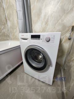 Санузел в светлых тонах и с качественной сантехникой, с функциональной стиральной машиной.