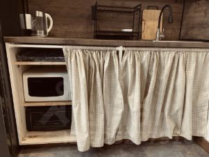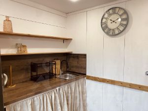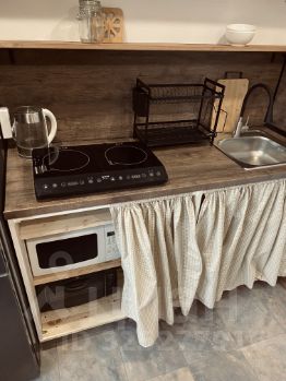 • Полностью укомплектованная кухня: плита, духовка, микроволновая печь, чайник, кухонный комбайн, посуда — всё с опцией скрытого хранения