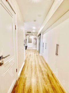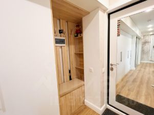 В гостиной: шкаф-купе со сплошными зеркальными дверьми. Глубокие полки позволяют организовать хранение объемных вещей или других предметов. Дополнительно, есть отдельная зона кладовой, где можно разместить неформатные вещи (лыжи, сноуборд, стремянка и др).