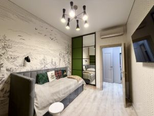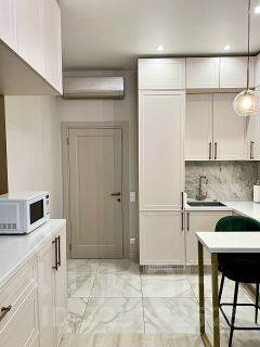 В квартире сделан качественный ремонт, полностью готова к проживанию. В комнатах и на кухне есть вся необходимая мебель. Для комфортного проживания установлена современная техника, включая кондиционер, холодильник, посудомоечную машину, телевизор, стиральную и сушильную машины. Санузел совмещённый, оборудован душевой кабиной. Просторная гардеробная.