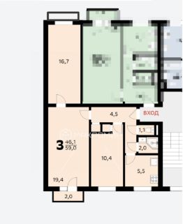• Общая площадь 59 кв.м., жилая 46,1 кв.м.