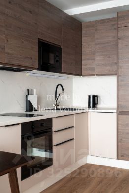 Кухня укомплектована всем необходимым - тут есть варочная панель, духовка, свч-встройка, посудомоечная машина, вытяжка, чайник и встроенный холодильник. В кран встроен питьевой фильтр. В шкафах - набор ресторанной фарфоровой посуды, набор кастрюль, сковородка, столовые приборы, разделочные ножи и доски, подставки под горячее.
