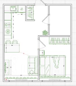 Пространство небольшое, но спроектировано максимально эргономично. В прихожей - парящий шкаф (удобно хранить обувь), в спальне кровать с подъемным механизмом (дает допхранение) и вместительный шкаф с рейлингом и выдвижными ящиками с доводчиками). В гостиной диван-трансформер на случай приезда гостей или родителей.
