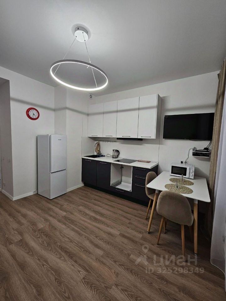 Дом комфорткласса, ухоженный подъезд, зелёный двор, видеонаблюдение.В квартире свежий ремонт в спокойных тонах, чисто и не прокурено. Продуманная планировка: кухня, спальное место, рабочая зона и хранение. Есть всё необходимое: шкаф, кровать/диван, стол, стулья, варочная панель, духовой шкаф, холодильник, стиральная машина, телевизор, чайник.
