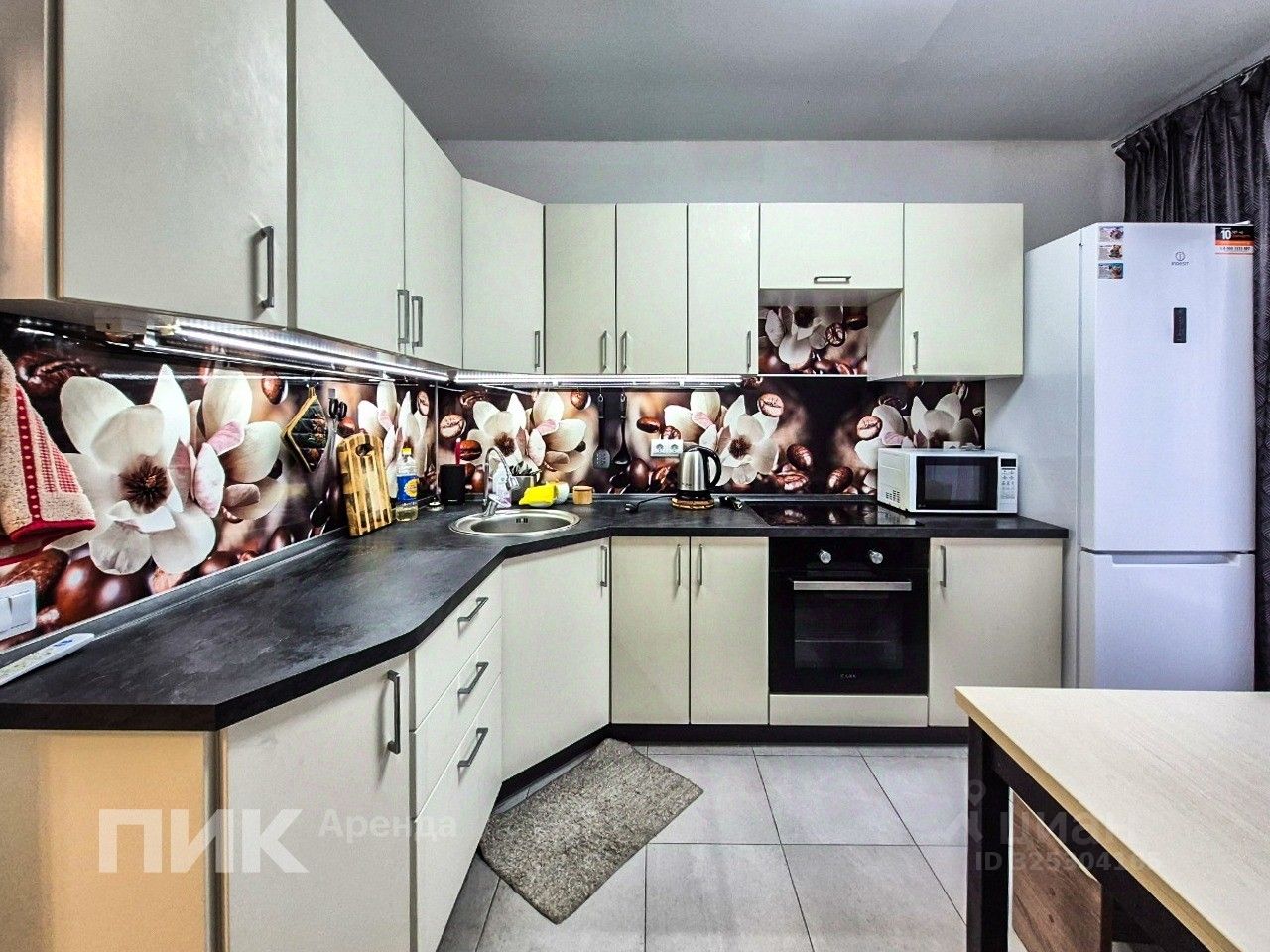 Квартира оборудована кухонным гарнитуром, мебелью и бытовой техникой: