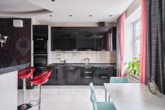 В отделке использованы натуральные материалы: деревянные полы и многоуровневое освещение подчеркивают статусность интерьеров, мебель и текстиль подобраны в премиальном сегменте.