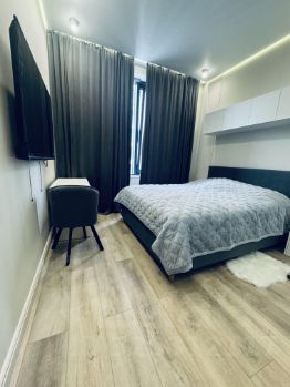 В квартире выполнен дизайнерский ремонт, что создаёт уникальную атмосферу уюта и комфорта. Кухня и комнаты полностью меблированы. В вашем распоряжении будет всё необходимое: кондиционер, холодильник, посудомоечная машина, телевизор и стиральная машина. Окна выходят как на улицу, так и во двор, поэтому, а значит, вы можете наслаждаться как городскими видами, так и тихим дворовым пейзажем. Санузел совмещённый, с современной ванной.