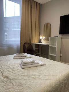 Для вашего удобства мы предоставляем безупречное хлопковое бельё, удобные подушки, легкое и тёплое одеяло, пушистые полотенца и средства личной гигиены, фен, утюг.