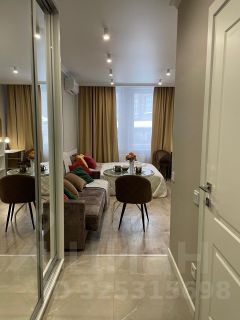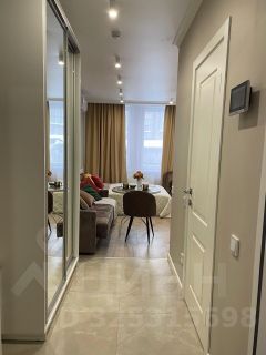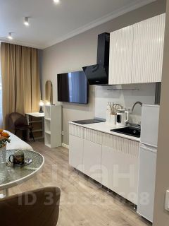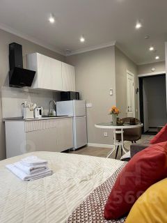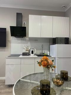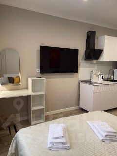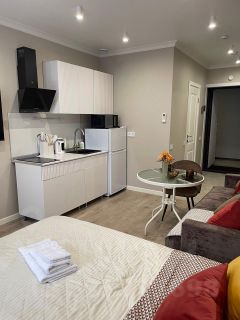 Просторная и светлая студия с современным дизайном. Интерьер выполнен в нейтральных тонах, что создает атмосферу уюта и спокойствия.