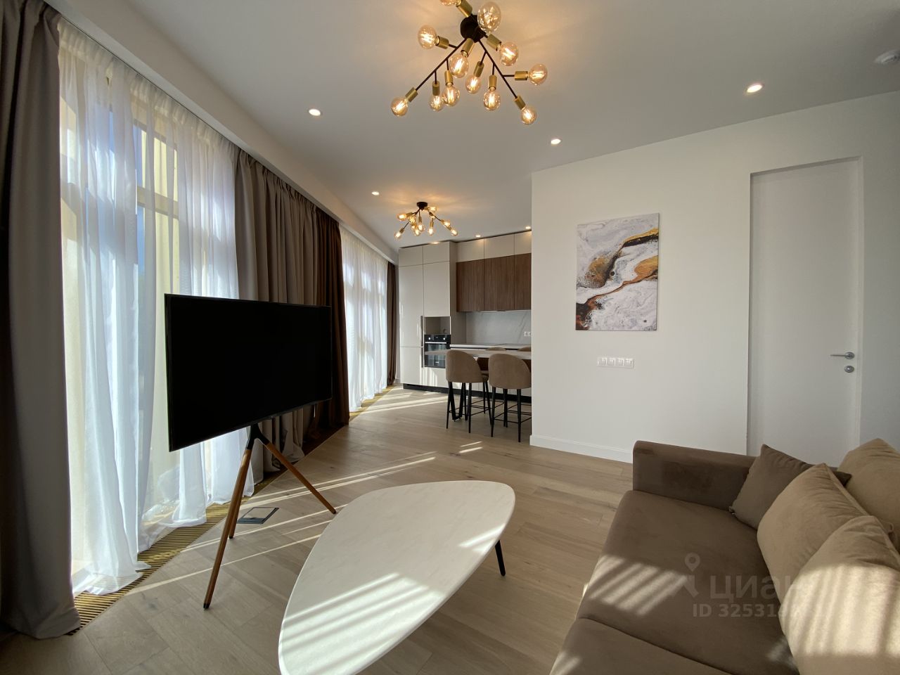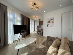 - Светлая кухня-гостиная с панорамным остеклением по периметру, оборудована встроенной мебелью и техникой ведущих производителей (Bosch, Neff). В спальне большая кровать с ортопедическим матрасом. Вместительные встроенные шкафы, большой санузел.