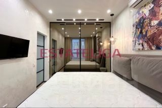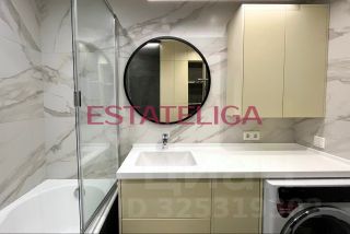 В квартира выполнен современный ремонт с использованием качественных материалов. Сделана звукоизоляция в спальне. Теплые полы в санузл и в зоне лоджии. Установлен кондиционер. Множество сценариев освещения.
