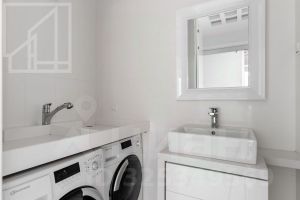 Планировка: просторная кухня-гостиная с обеденной зоной, две жилые комнаты (можно использовать как спальню или кабинет), два совмещенных санузла с душевыми кабинами, гардеробная комната, постирочная, прихожая. Квартира частично меблирована, укомплектована необходимой бытовой техникой. Установлена сплит-система, полы с подогревом.