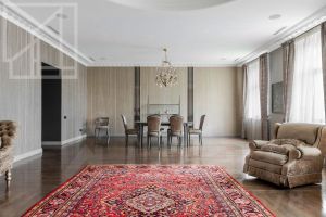 Планировка: гостиная-кухня, четыре спальни, три санузла, гардеробная, постирочная. Высокие потолки 3.80 м. Окна выходят на обе стороны: в тихий двор и на улицу, при этом в квартире очень тихо. Ремонт в уникальном авторском стиле. Квартира предлагается с мебелью, вывоз обсуждается.