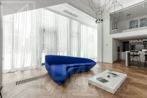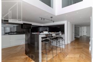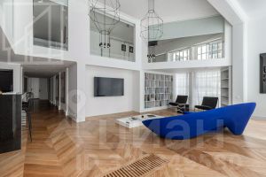 Планировка: 1 этаж кухня-гостиная, спальня со своим санузлом и гардеробной комнатой, домашний кинотеатр, гардеробная, гостевой с/у, постирочная; 2 этаж: гостиная, зона отдыха с домашним кинотеатром, 2 спальни со своими санузлами, гардеробная, гостевой санузел, кладовая. Антресоль: 3 спальни, гардеробная, 2 ванные комнаты. Высота потолков - 3,60 м. В квартире выполнена новая дизайнерская отделка с применением натуральных материалов(дерево, природный камень, мрамор).