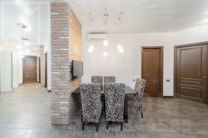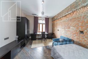 Планировка: гостиная-кухня, три спальни, три санузла, гардеробная комната, постирочная комната. Потолки 3,2м. Окна выходят в тихий двор. В квартире выполнен современный ремонт в авторском стиле. Квартира полностью меблирована и укомплектована бытовой техникой.