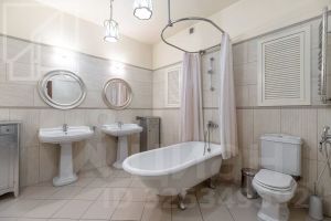 Планировка: кухня, гостиная с камином, основная спальня с совмещенной ванной комнатой и гардеробной, две спальни, одна из которых с совмещенным санузлом, прихожая, гостевой туалет, постирочная и просторная лоджия. Квартира полностью меблирована и оснащена всей необходимой бытовой техникой. Вывоз и докупка обсуждается.