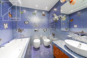 Планировка: гостиная-кухня, основная спальня с двумя гардеробными и ванной комнатой, детская со своей ванной комнатой, комната свободного назначения, гостевой туалет, балкон. Панорамные виды на город. Квартира с эксклюзивной итальянской мебелью, дорогостоящими отделочными материалами, в ванных комнатах мозаика Sicis.