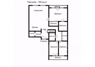Планировка: гостиная, объединенная с кухней и обеденной зоной, три спальни, одна из которых со своим санузлом и гардеробной, совмещенный и гостевой санузлы, гардеробная, постирочная, две лоджии, балкон, прихожая.