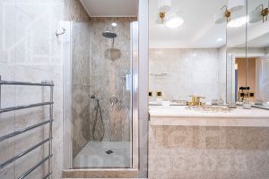 Планировка: 1 мастер спальня со своим санузлом и гардеробной, 1 спальня с гардеробом, 2 изолированные спальни, постирочная, гостиная, кухня-столовая, полноценный санузел и гостевой санузел. Потолки 3м. Новый ремонт. Квартира полностью меблирована и оснащена всей необходимой техникой.