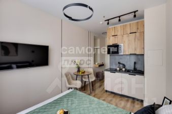 В квартире есть: холодильник, микроволновка, стол, стулья, шкаф, двуспальная кровать, стиральная машина, сушка для одежды, утюг, гладильная доска, телевизор, фен, чайник.