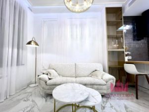 Вашему вниманию предлагается роскошная, просторная квартира с дизайнерским ремонтом, которая воплощает в себе элегантность и комфорт. Светлые, наполненные воздухом комнаты, создают ощущение простора и уюта. Стильная кухня, украшенная изысканными светильниками, станет сердцем вашего дома. Центром внимания ванной комнаты является круглая белая ванна, приглашающая к релаксации. Удобная двухспальная кровать в спальне гарантирует спокойный и комфортный отдых.