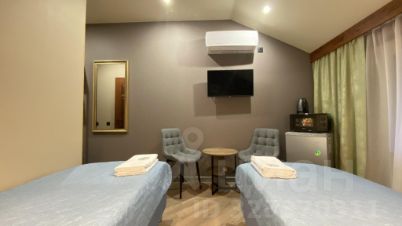 Студия с двумя односпальными кроватями, оборудованная всем необходимым для комфортного проживания. В номере: кондиционер, телевизор, микроволновая печь, мини-холодильник, санузел с душем.