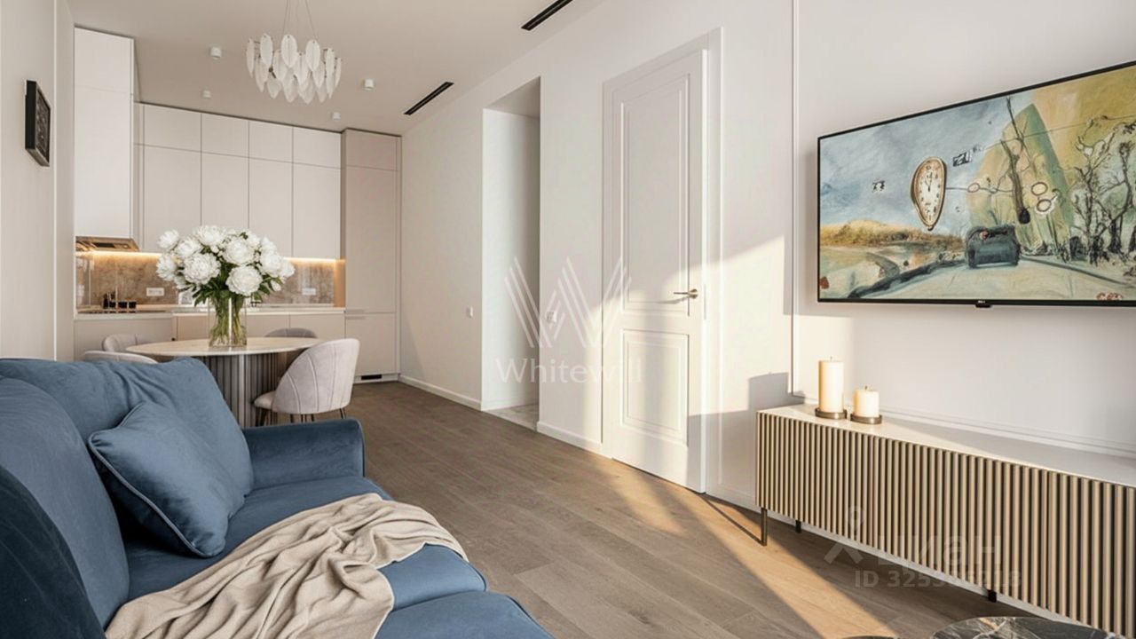 Светлые апартаменты в комплексе бизнес-класса Slava в 5 минутах от "Белорусской". Выполнена премиальная отделка в современном стиле. Благодаря панорамным окнам и высоким потолкам пространство наполнено естественным светом. Спланирована кухня-гостиная, спальня, прихожая со встроенным гардеробом, санузел с душем. Апартамент полностью укомплектован мебелью и современной техникой. Установлена стиральная и посудомоечная машина, система кондиционирования. Из окон открывается вид на улицу.