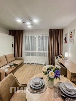 Сдаётся светлая квартира-студия с евроремонтом и совмещённым санузлом в ЖК Руставели 14, без депозита!