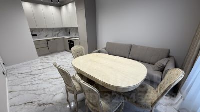Квартира полностью оборудована современной техникой: кондиционер, холодильник, посудомоечная машина, телевизор и стиральная машина. Просторная кухня площадью 20 кв. м с мебелью создает уютную атмосферу для семейных ужинов.В ванной комнате установлена ванна, что позволит вам расслабиться после долгого дня. В комнате также есть вся необходимая мебель для комфортного проживания.