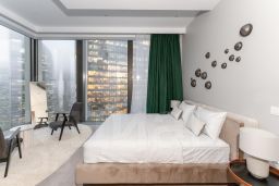 Кроме того, в апарте угловая спальня с потрясающим интерактивом 24/7, где установлена новая кровать king-size с анатомическим матрасом, широкое зеркало в полный рост и большие шкафы - для любителей путешествовать не налегке.