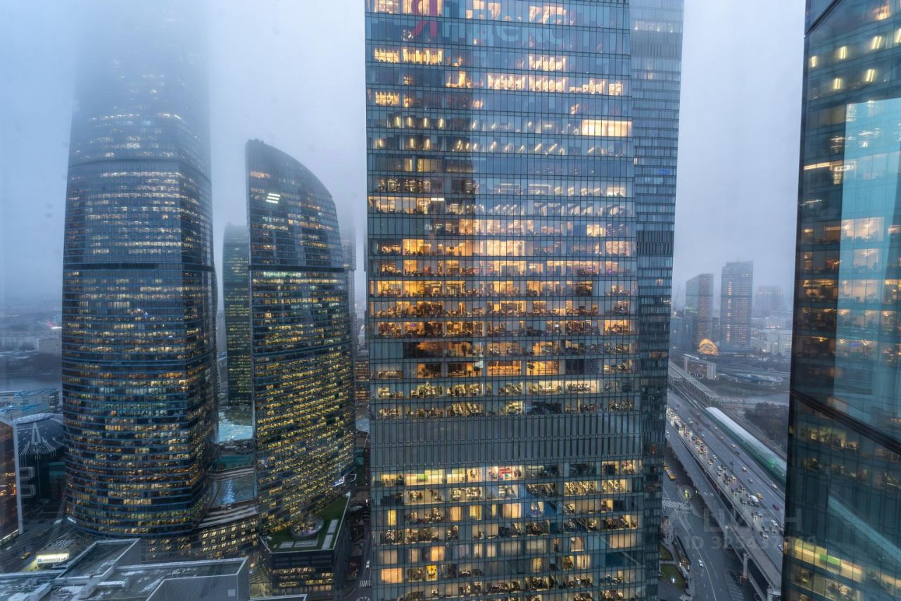 Из окон открывается потрясающий панорамный вид на башни Москвы-сити и город.