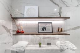 А панорамная ванная комната с большим окном позволит в полной мере ощутить масштаб этого города, лежа с теплой воде, наполненной пеной.