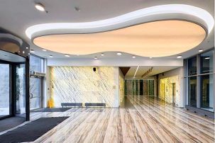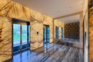 В доме имеются панорамные лифты на фасаде, откуда открывается вид на город уже по пути домой. В лобби отделка использует натуральный камень, панели из оникса, стойка ресепшн и мягкие зоны для ожидания. Внутренняя территория дома (двор) имеет свой собственный сад с дорожками, фонтанами, детскими и спортивными площадками. Для жителей работают фитнес-студия и большая детская игровая, на первом уровне — повседневные сервисы.