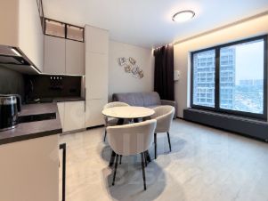 Стильная студия с дизайнерским ремонтом в современном клубном доме Форст. Квартира полностью готова к комфортному заселению — вы берёте с собой только чемодан.