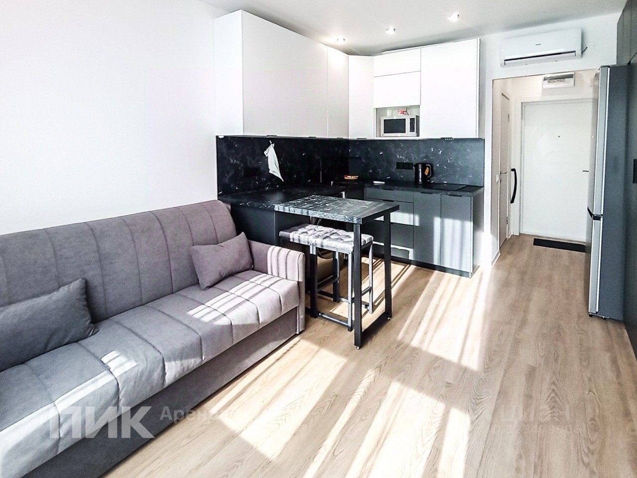 Сдаётся светлая квартира-студия с евроремонтом и совмещённым санузлом в ЖК Руставели 14, без депозита!